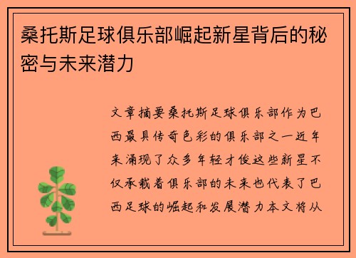 桑托斯足球俱乐部崛起新星背后的秘密与未来潜力